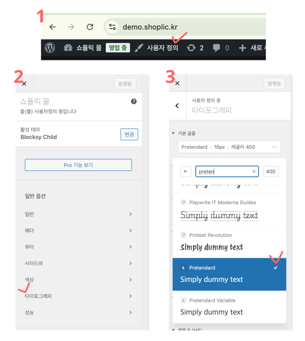 - 플러그인이 활성화된 상태에서, 사용자 정의 CSS를 통해 폰트를 직접 호출하여 특정 요소에 적용할 수 있습니다.